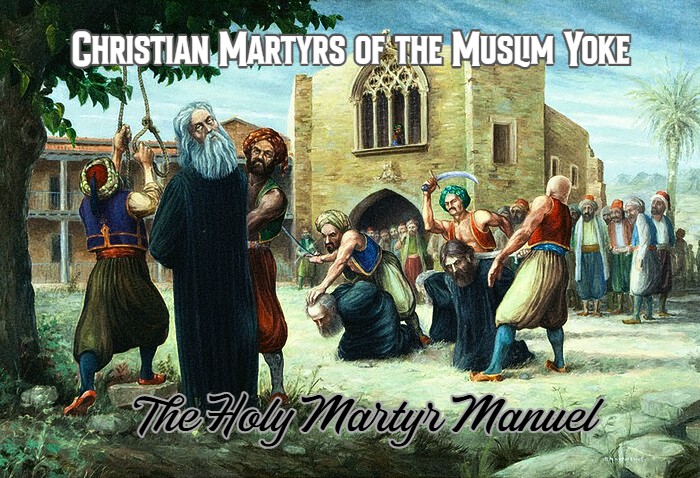 Manuel, the Martyr of Christ, had his origins in Sfakion on the island of Crete, and was the son of Christian parents. At an early age he was taken captive by the Turks, who subjugated Sfakion after the1770 revolt. The Hagarenes took notice of his competency in performing his tasks and forcibly made him a Moslem, circumcising him in accordance with their custom.